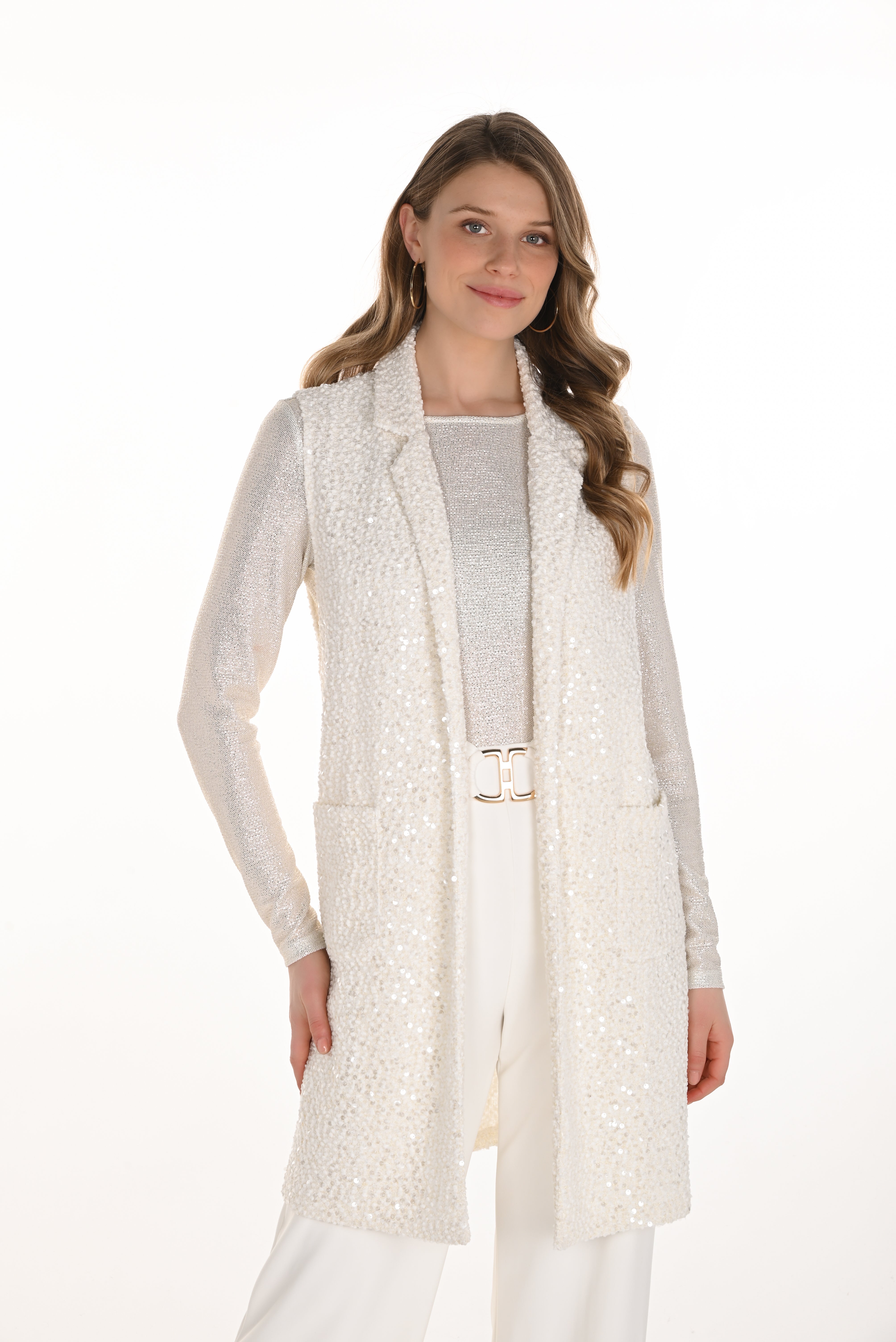 Sleeveless Bouclé Collared Vest